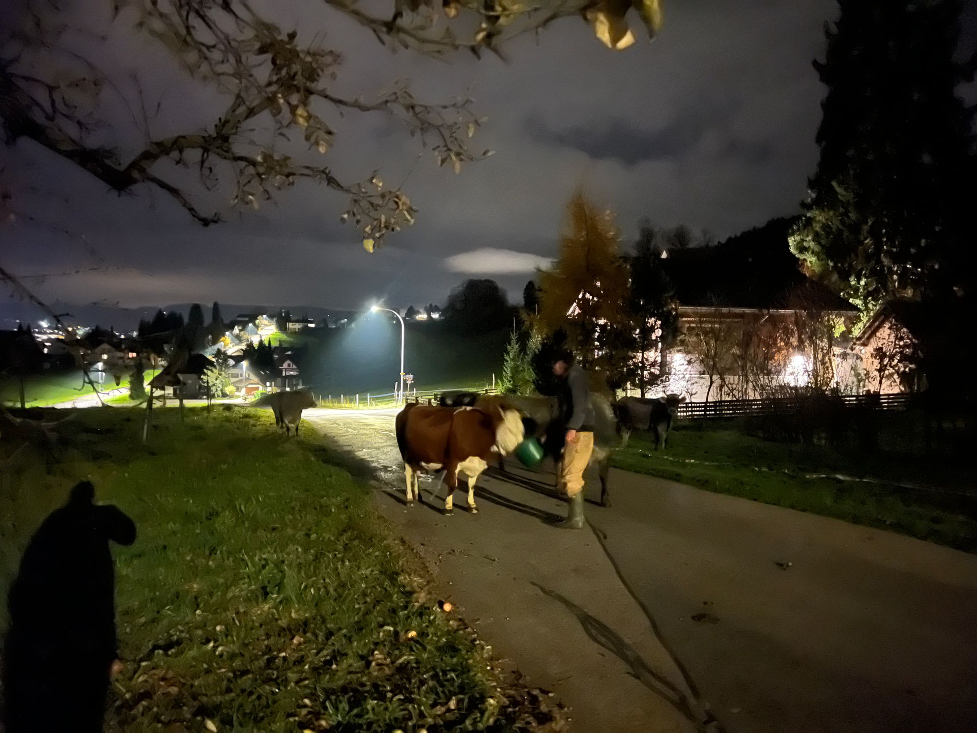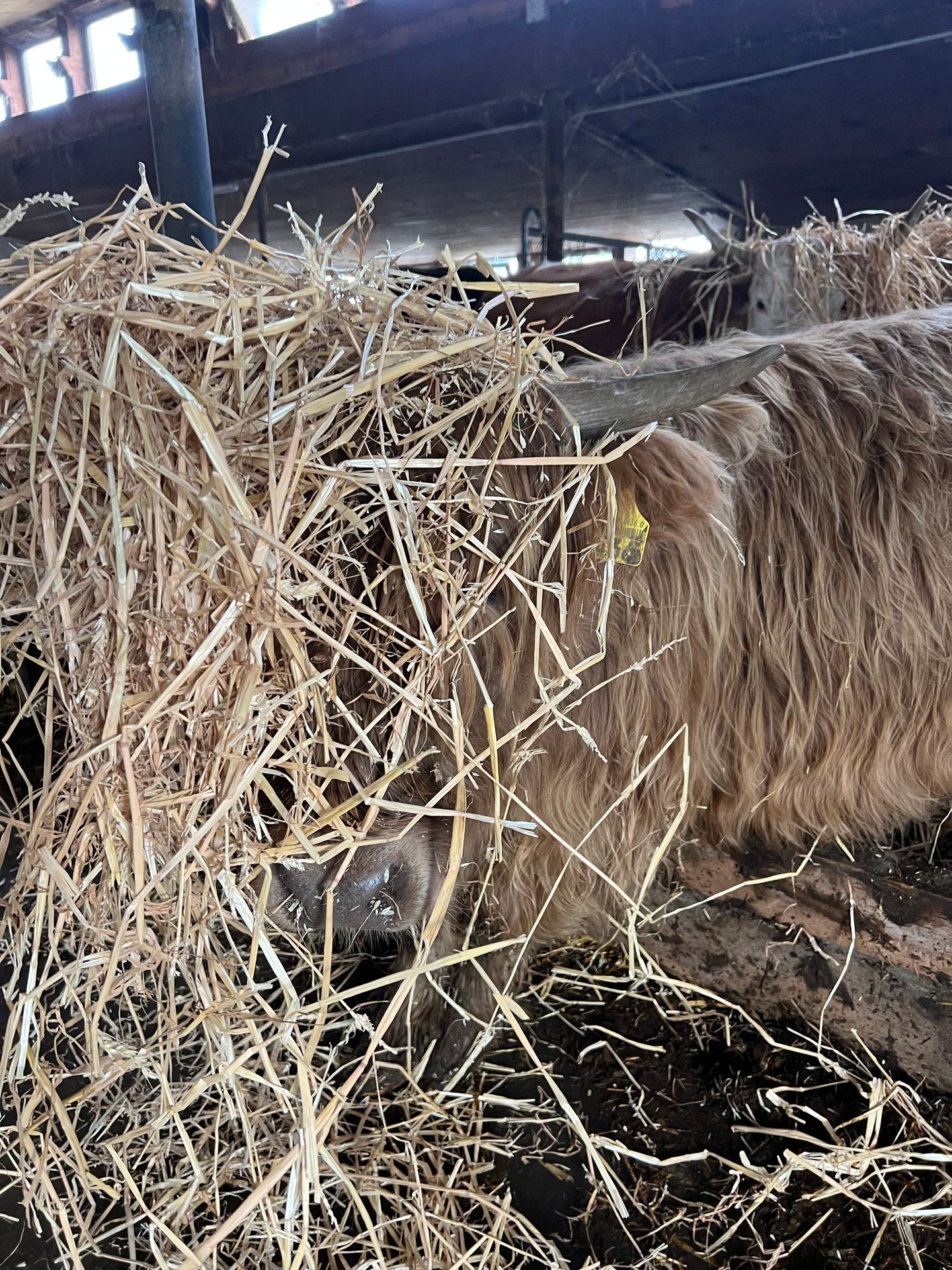 Bei manchen im Kopf, bei uns gehört das Stroh aber eigentlich nicht auf den Kopf, sondern auf den Bodenam Sonntagabend sind unsere Tiere dann doch noch um die Häuser gezogen - alle wieder sicher zu Hause
