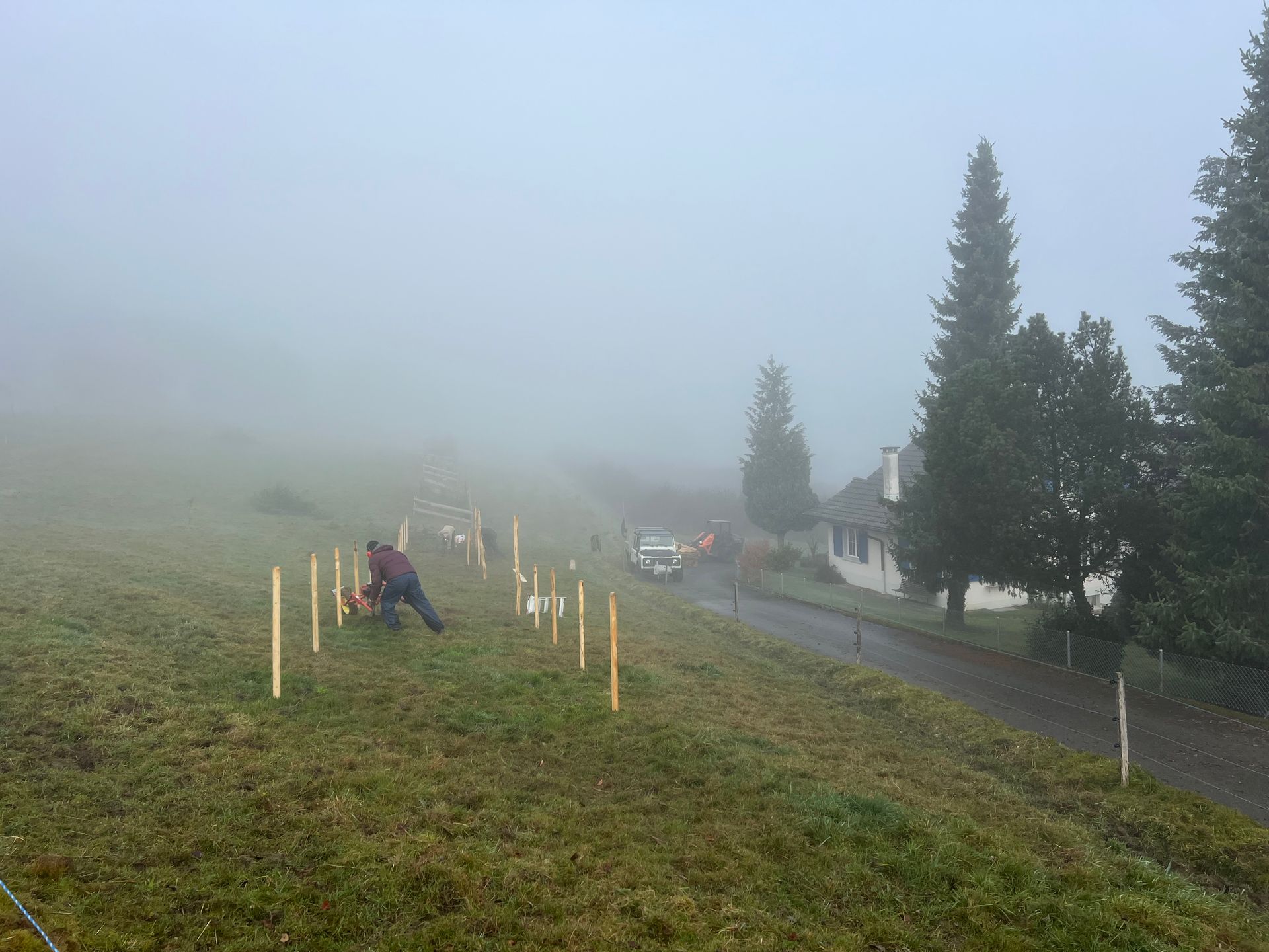 - Heckentag - mehr als 20 Personen haben uns geholfen, 600 Heckenpflanzen zu pflanzen, so toll - hat echt Spass gemacht. Leider hatte es am Setztag so viel Nebel, dass wir die eigene Arbeit und den Fortschritt nicht gesehen haben.